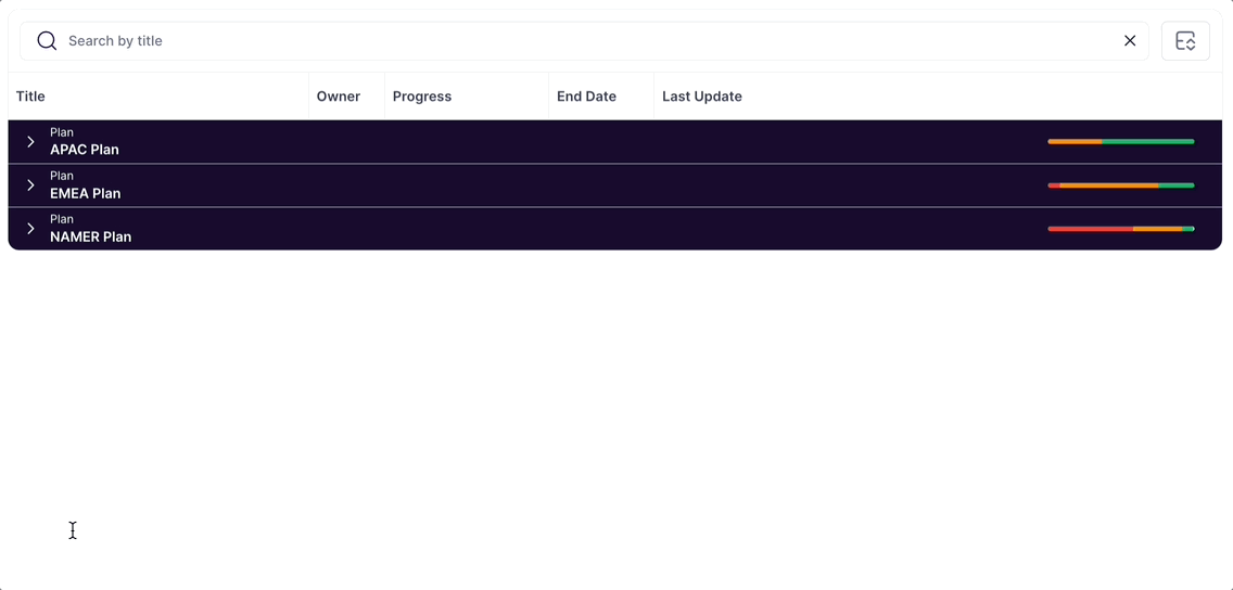 Available automatically on all drill-downs and configurable on Strategy, Owners, Risks & Measures tables. This improvement helps roll-up health on any grouping rows to help report readers easily find where focus is needed.