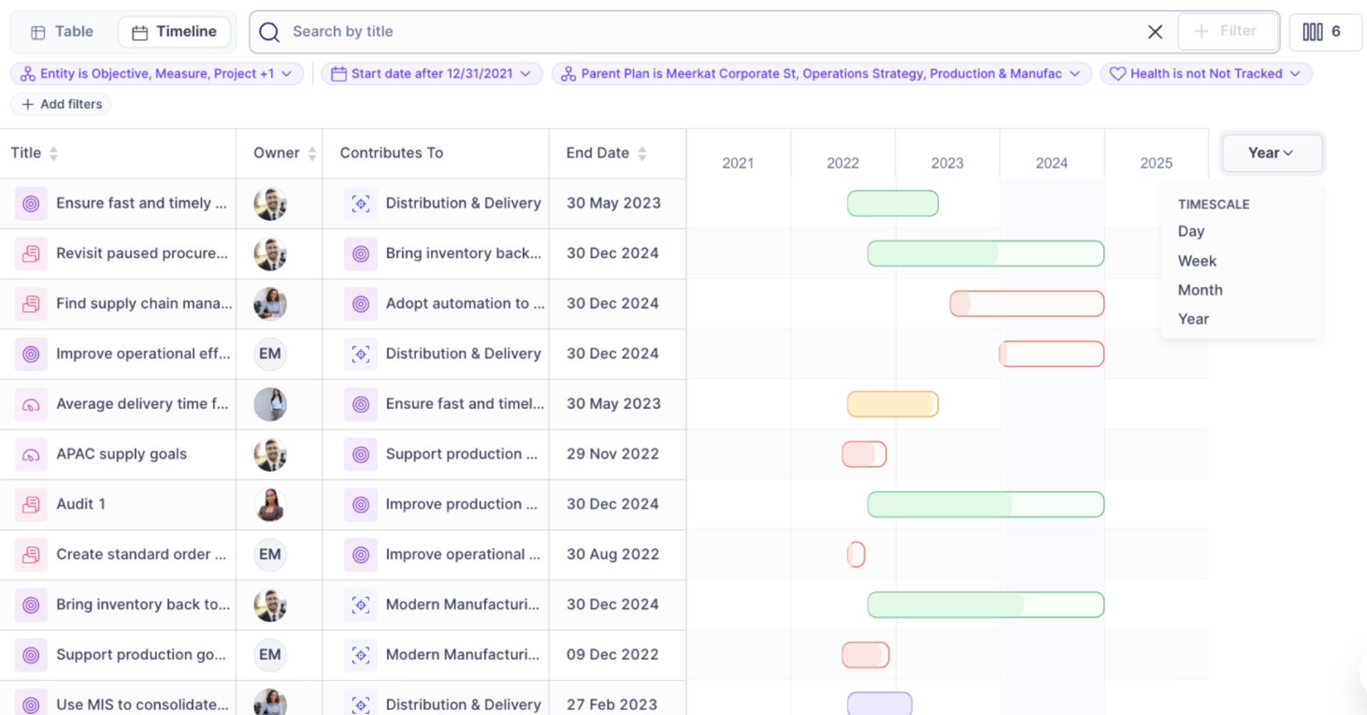 Timeline View is ideal for any analysis you need to share around how programs of work interact or depend on one another.