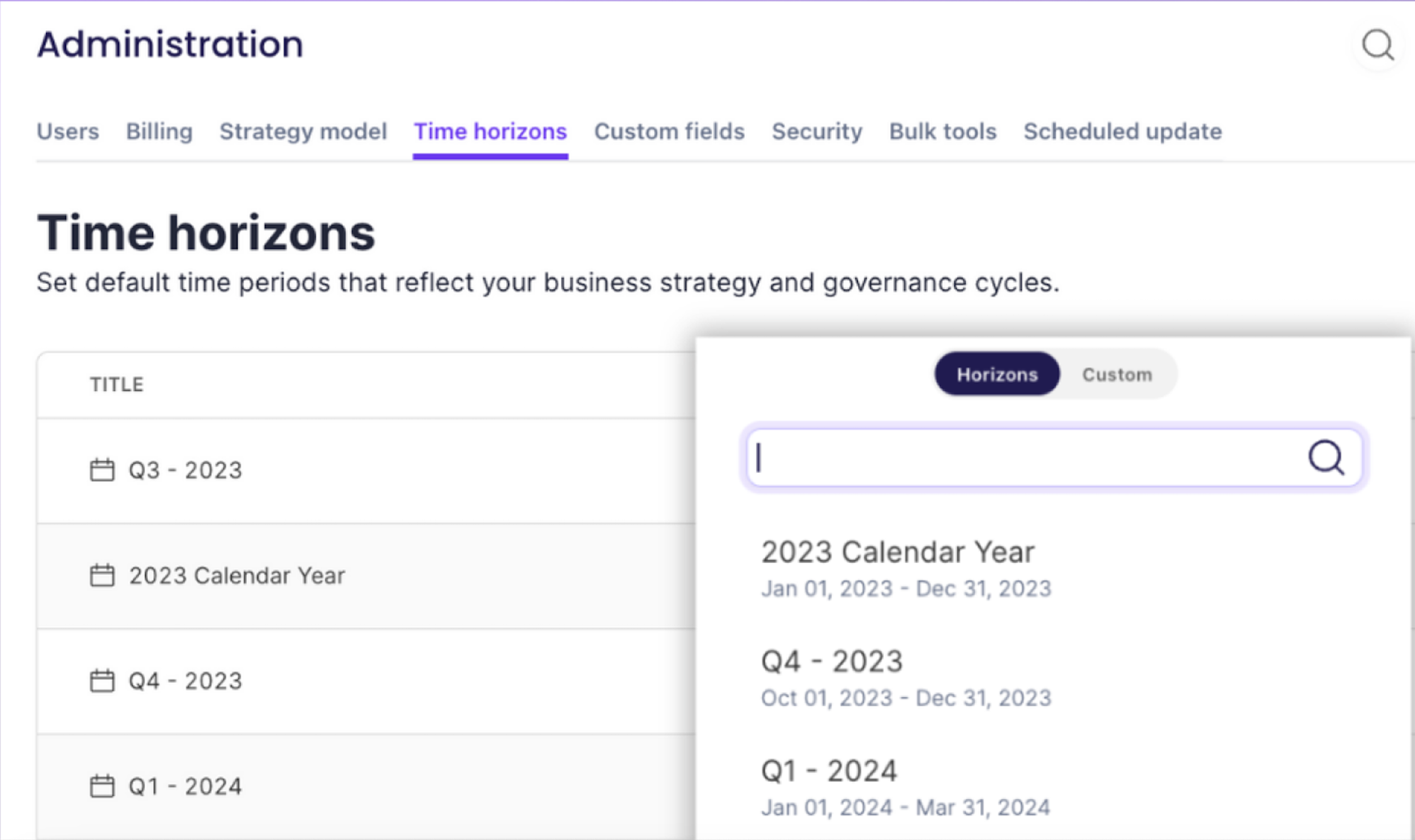 With Cascade's Time Horizon feature, you can now set default time periods that reflect your strategy and governance cycles.