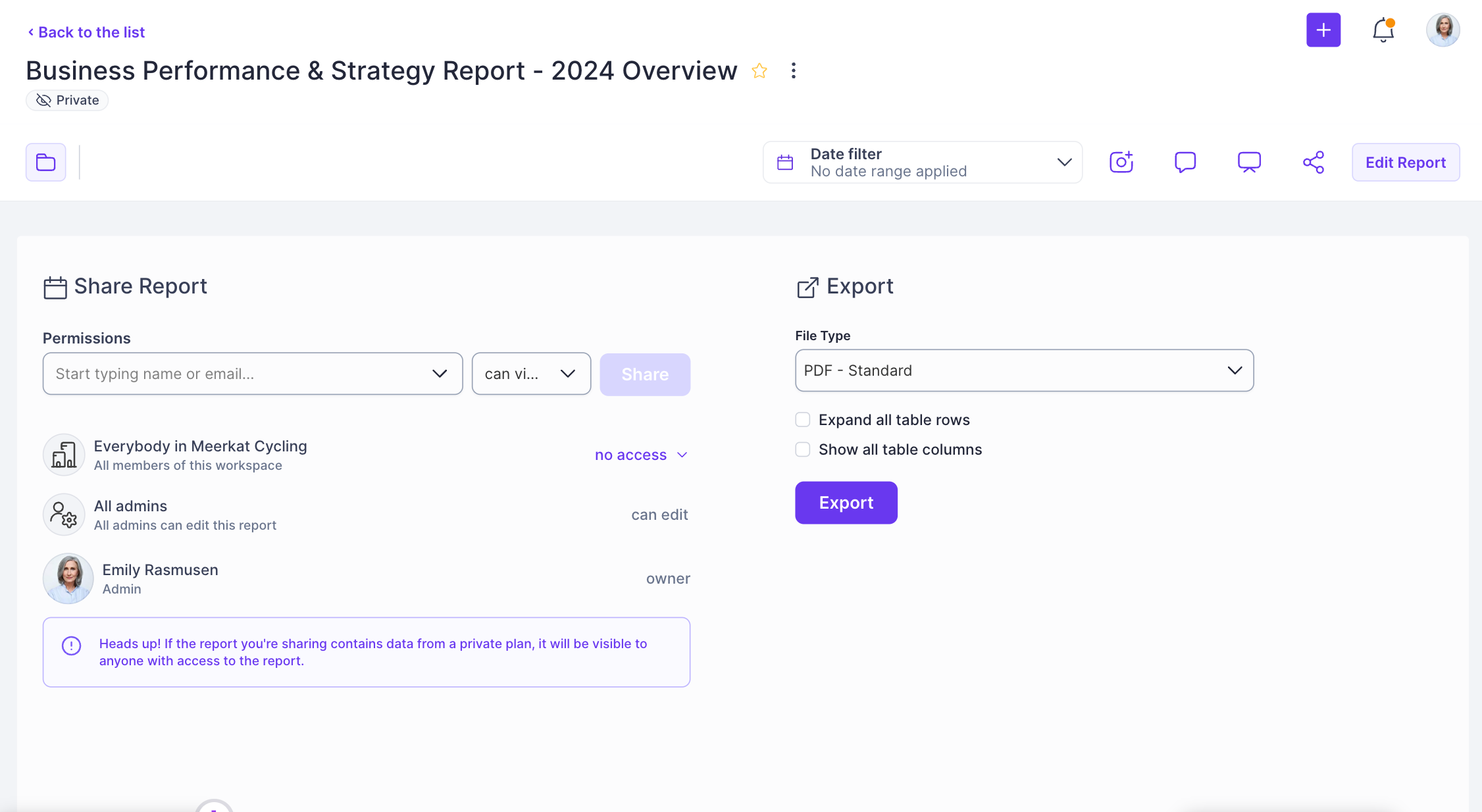 Can I print my report on Cascade, share it offline with stakeholders, or attach it to a docket I am putting together? Now, you can. Export your reports from Cascade in a couple of clicks.
