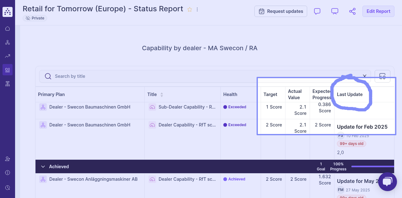 It would be great to be able to type free text directly into the “Last update” field in a report, rather than opening the side window for a Measure, clicking updates, post update etc - it is a lot of clicks.